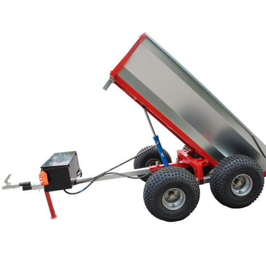 XTM OD-12 hydraulisk pump tipping ATV trädgård släpvagn med tunga men lätta vikt, brett flotation däck och hög markfrigång för utanför användning på väg.